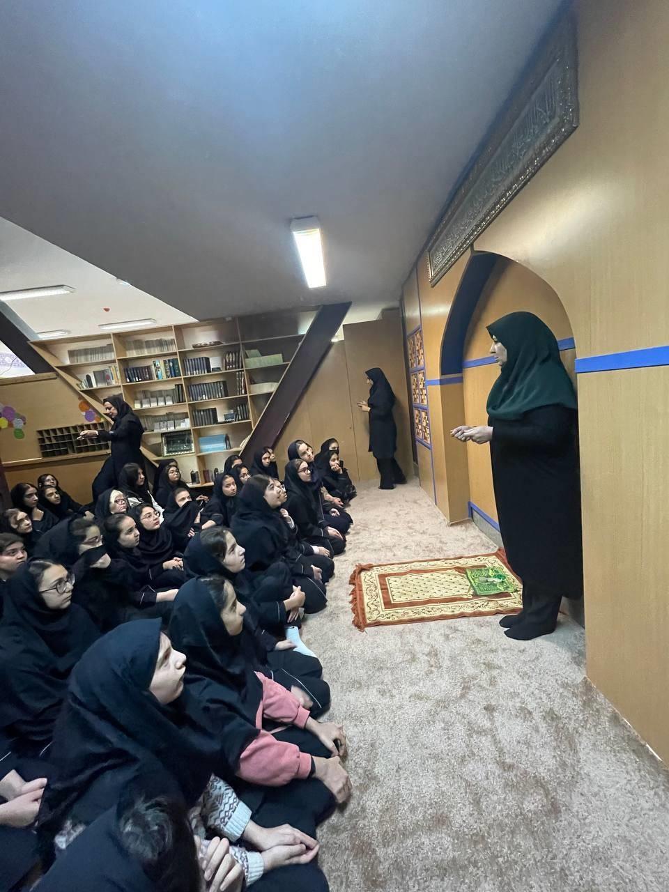 حضور دانش اموزان در نمازخانه جهت اقامه نماز